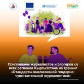 “Приглашаем журналистов и блогеров со всех регионов Кыргызстана на тренинг «Стандарты инклюзивной гендерно-чувствительной журналистики»”